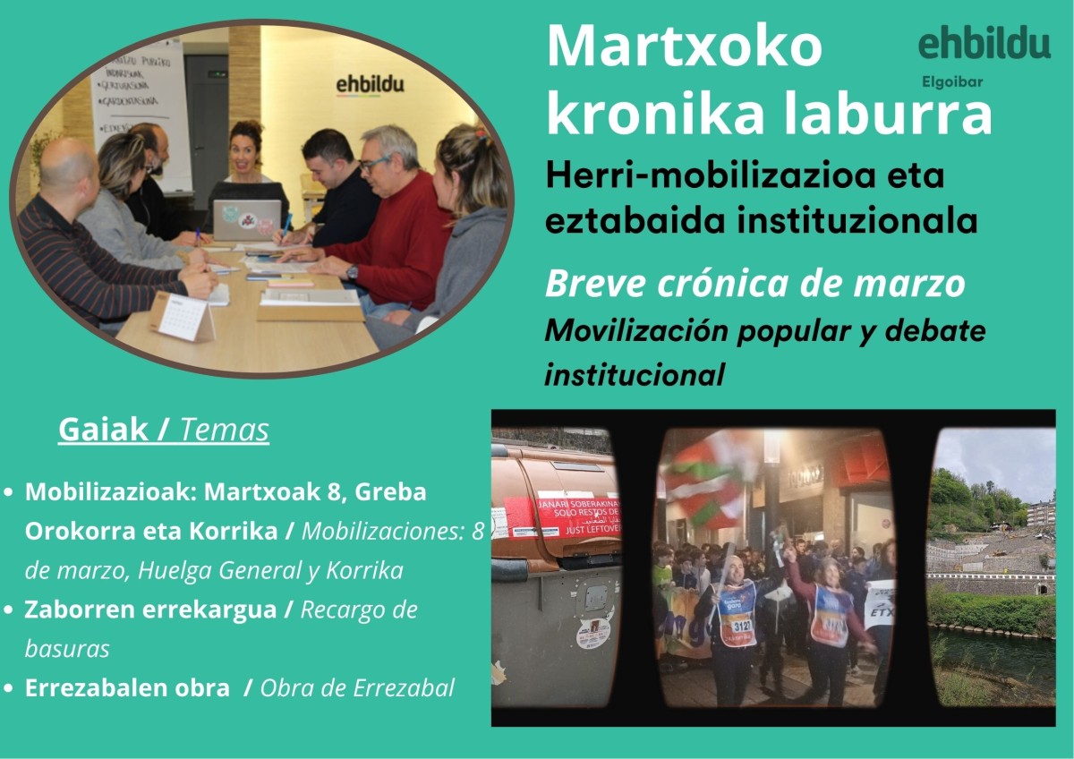 Eta ez dirudi egongo denik, udalak prentsan agertu denean adieraziz gure proposamenen zai daudela, guk aurkeztuak genituenean eta berehala atzera bota dituztenean.